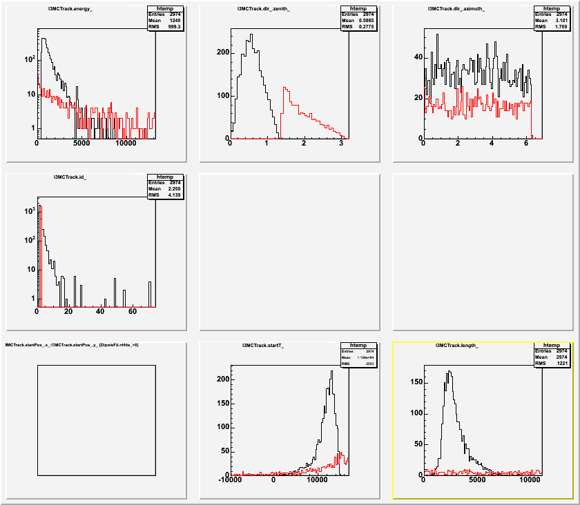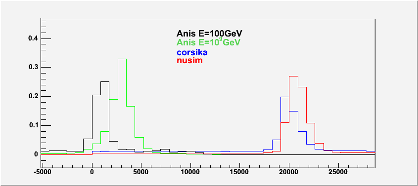 Basic event information (Black--dCORSIKA, Red-NUSIM)