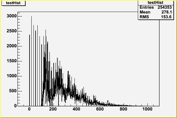 By "eye", our default cut values are decided to be "Minimum Time"=16500ns and "Maximum Time"=25500ns which excludes most of noise hits but still include most of signal hits.