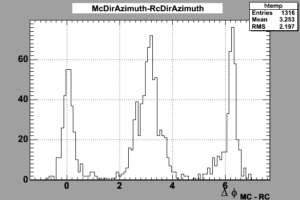 Azimuth MC vs Reconstructed Comparison