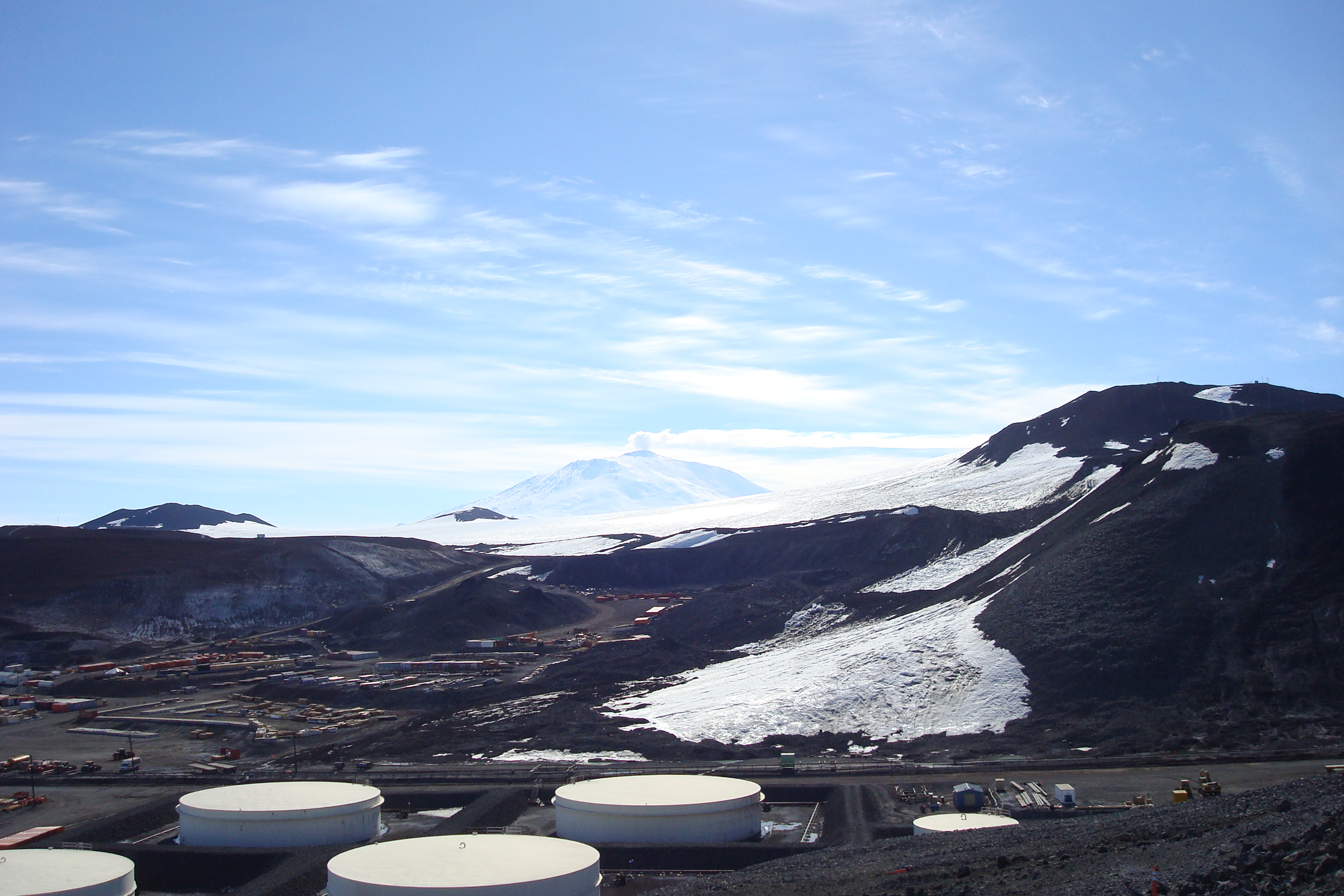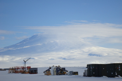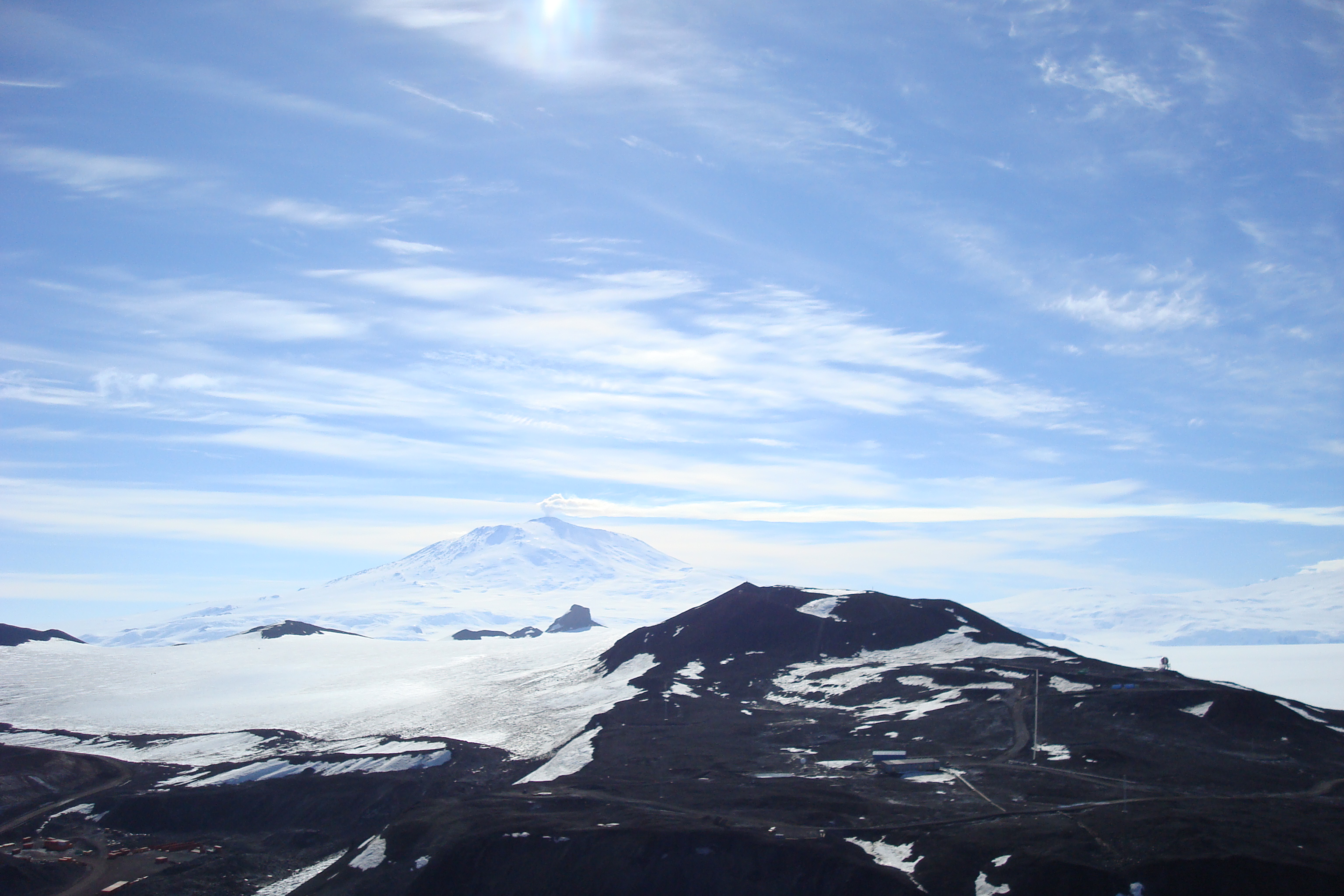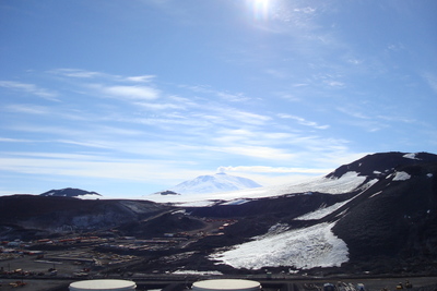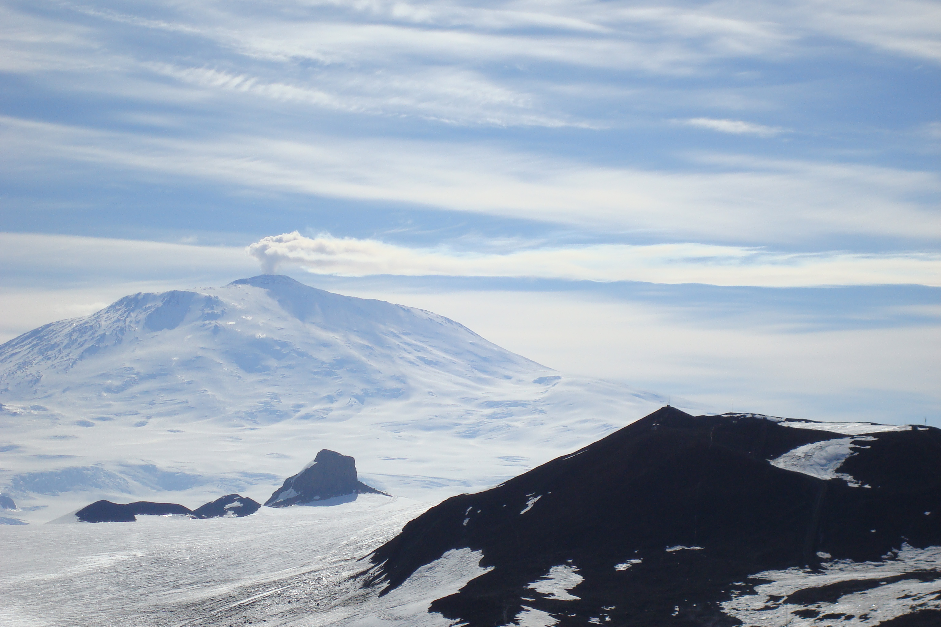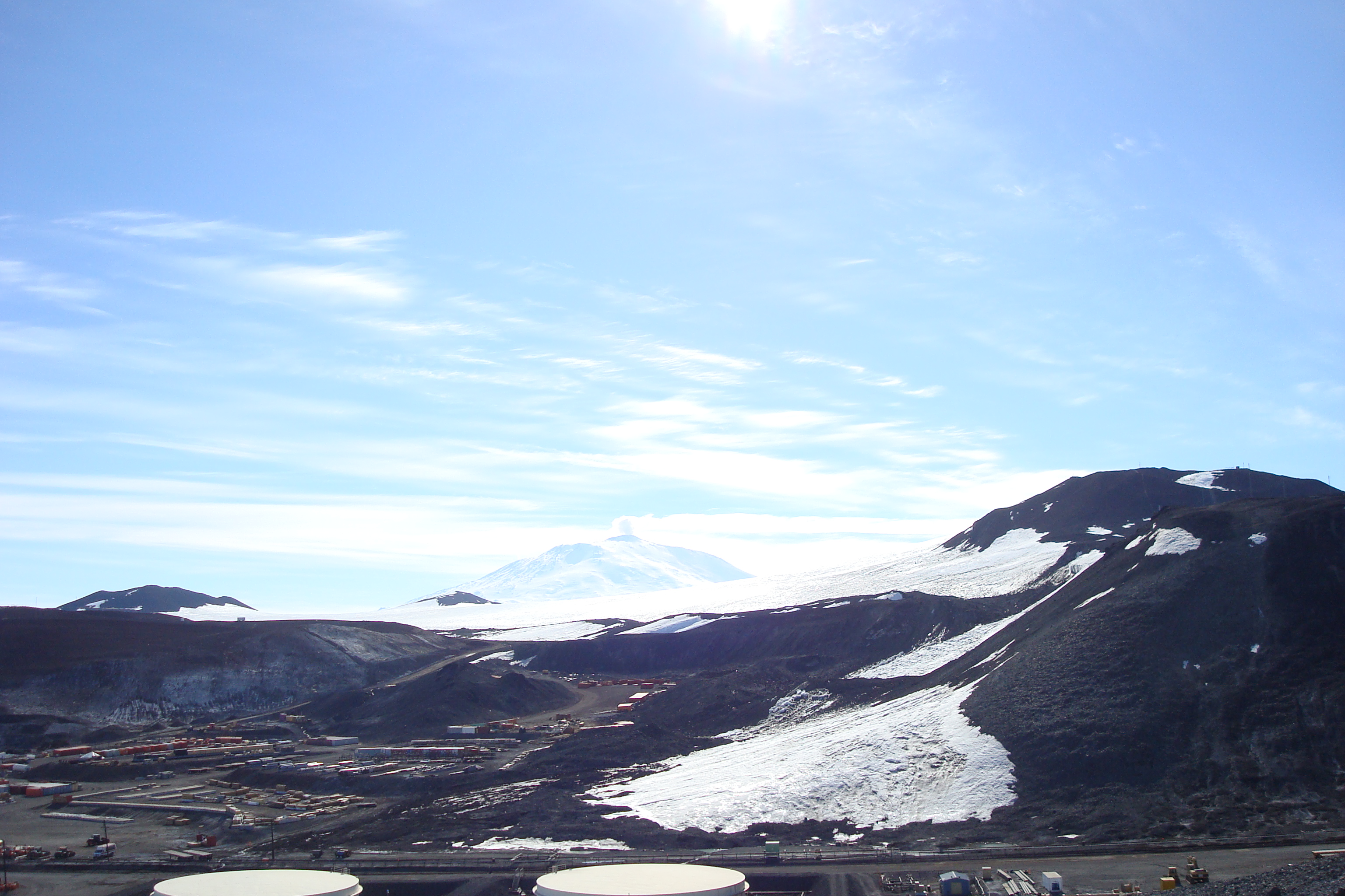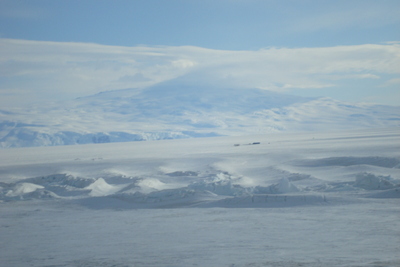 That mountain is called Mt Erebus, the southern-most active volcano. |