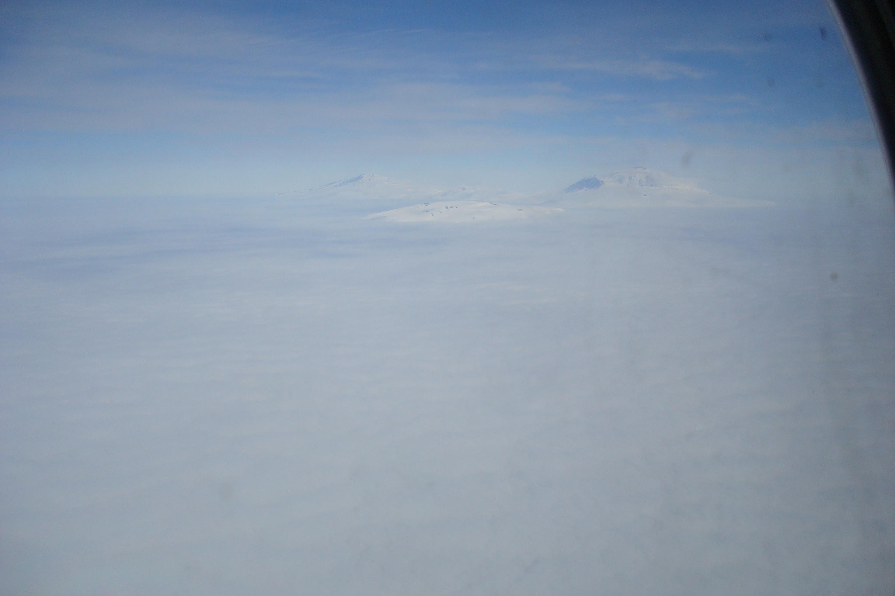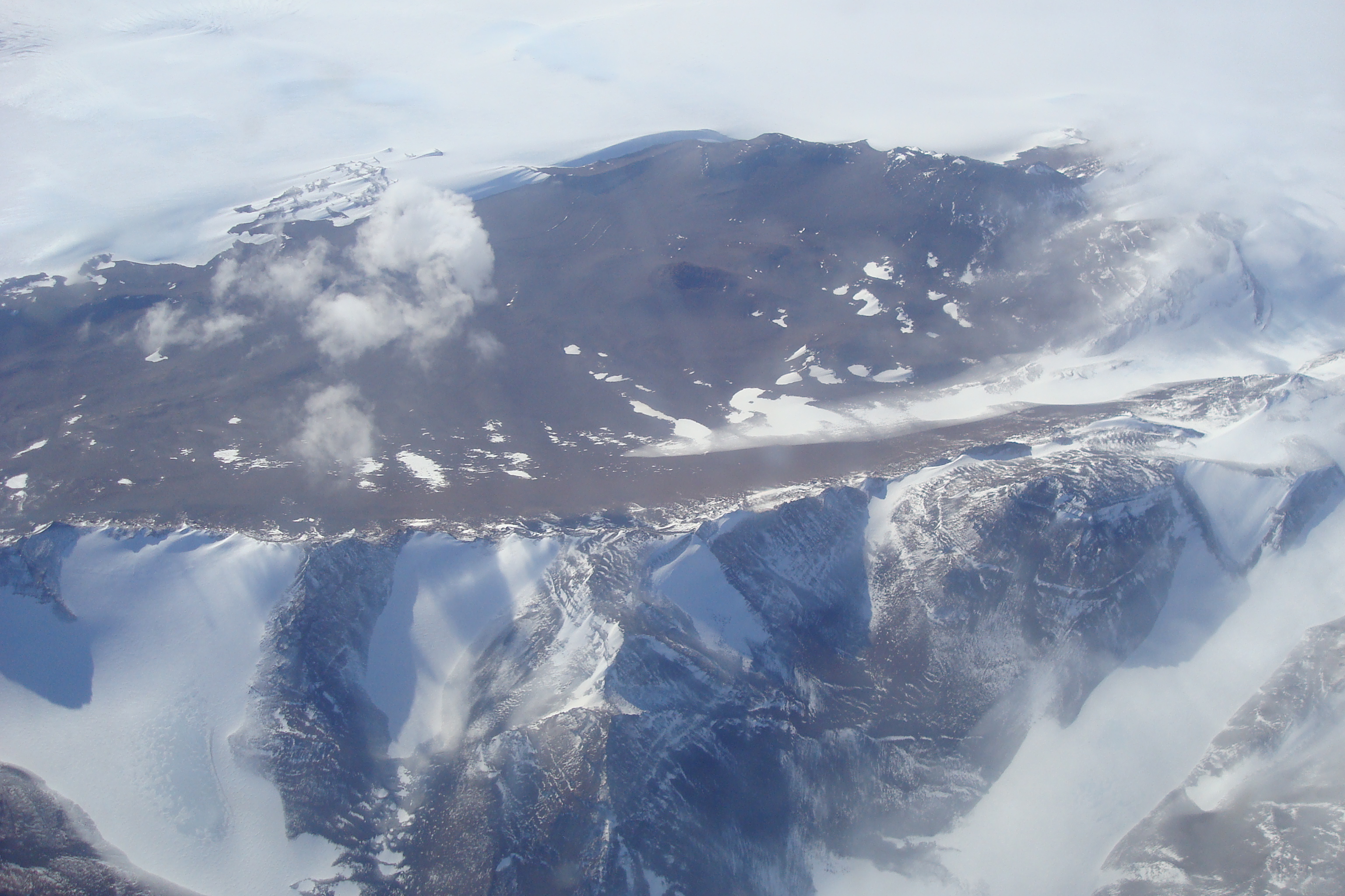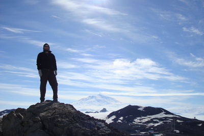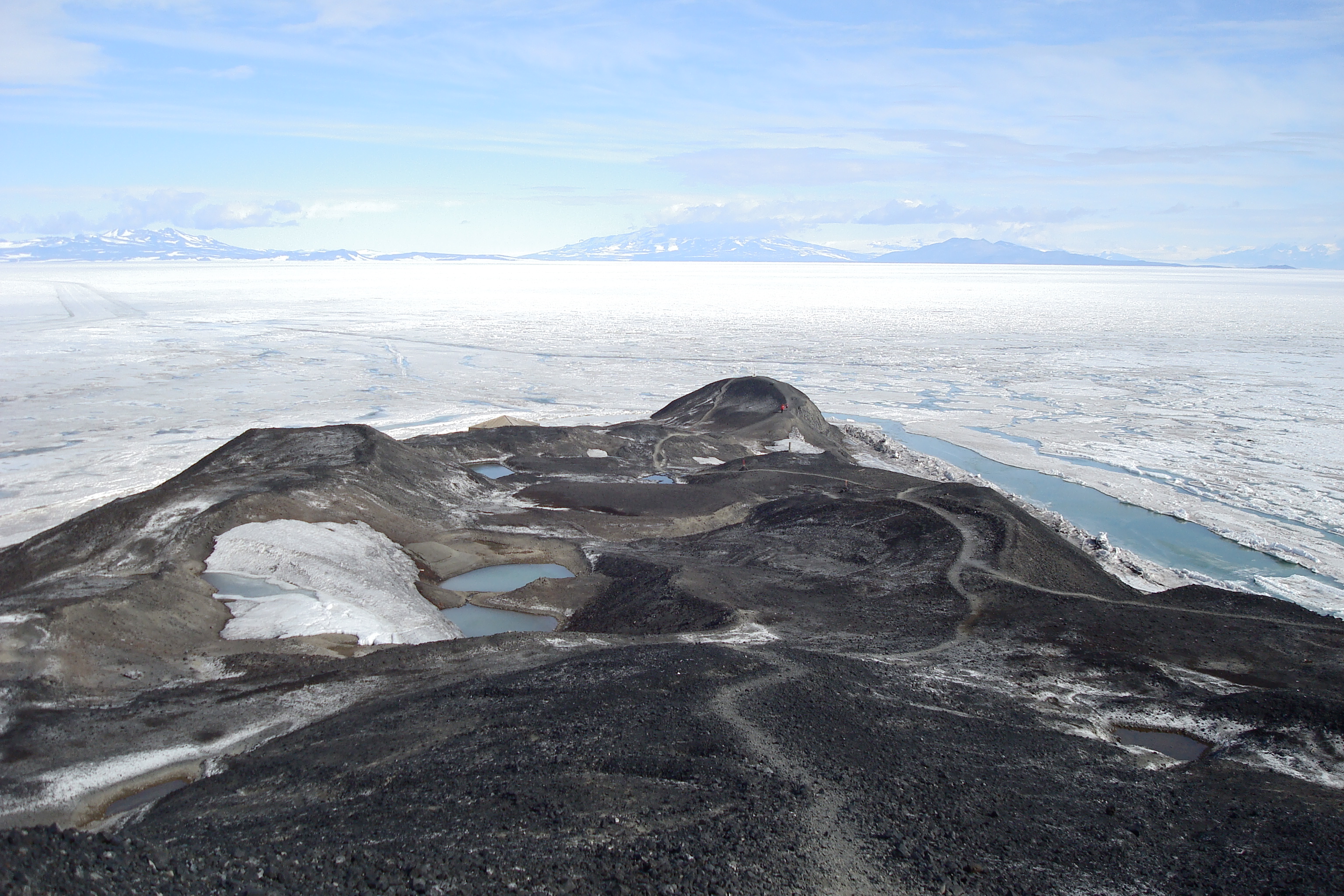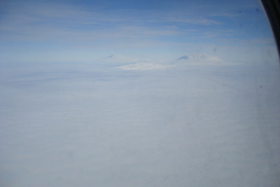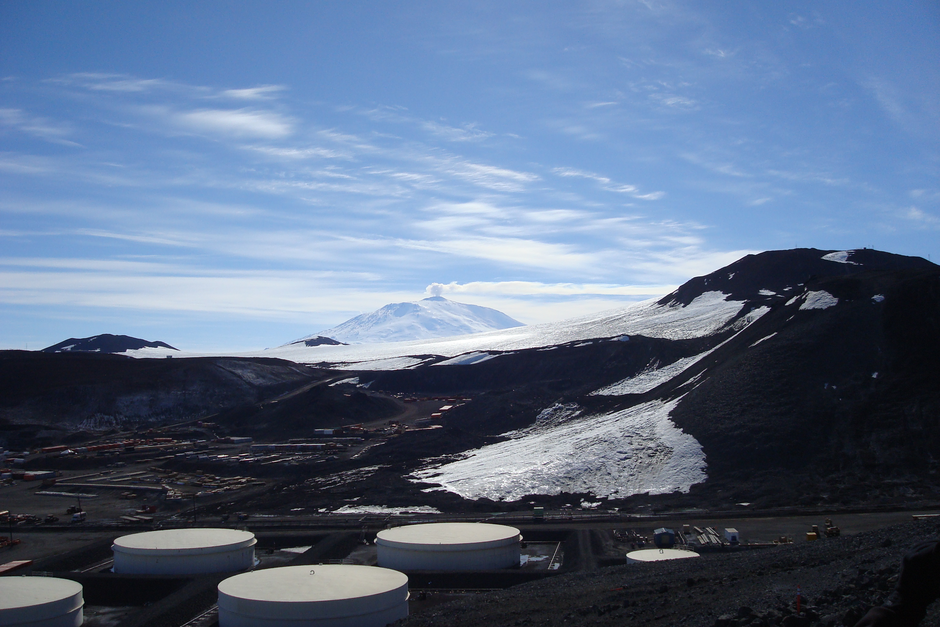 That mountain is called Mt Erebus, the southern-most active volcano. |
