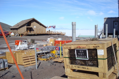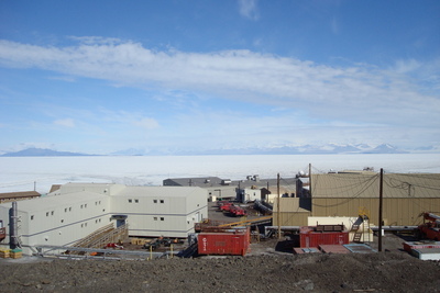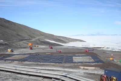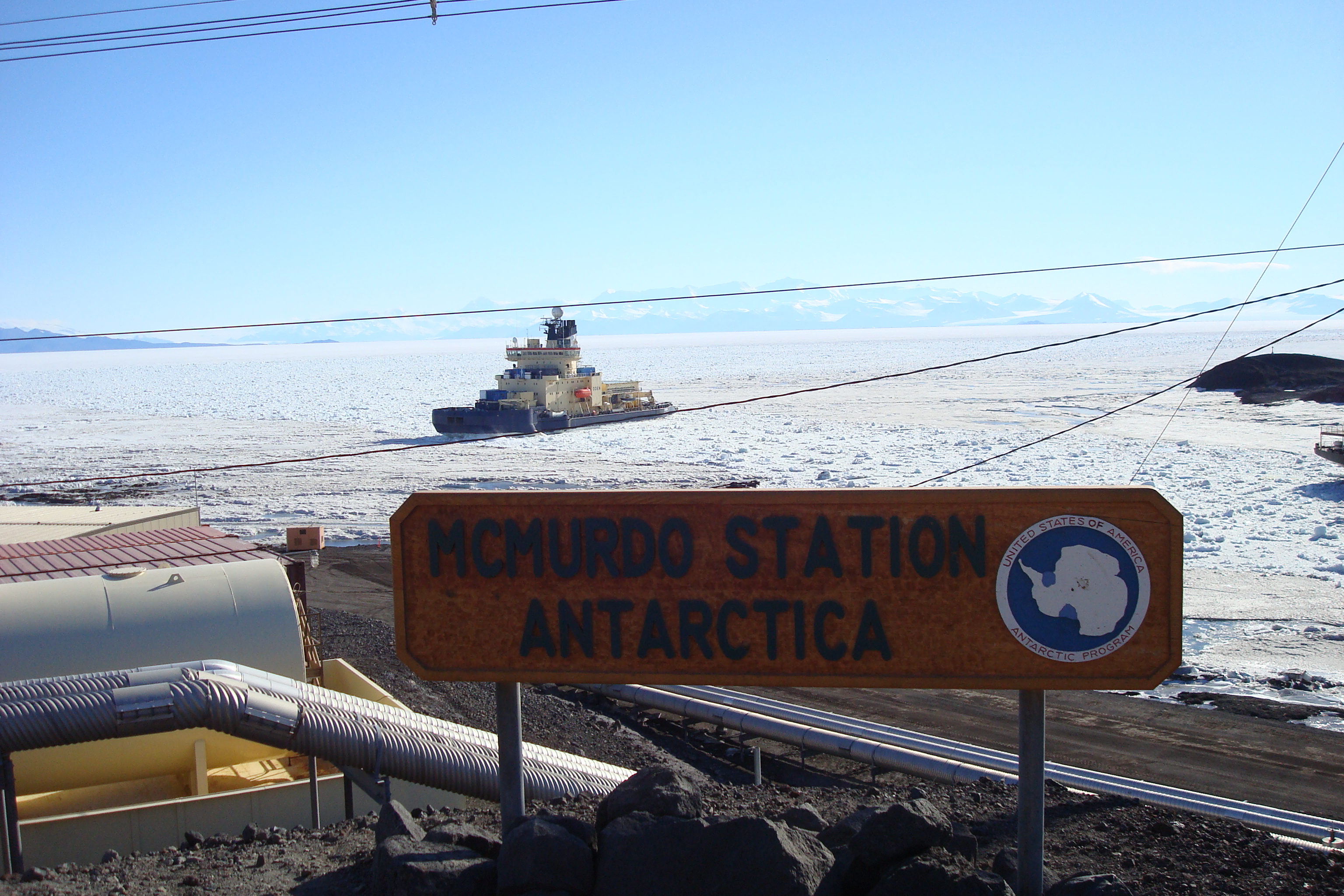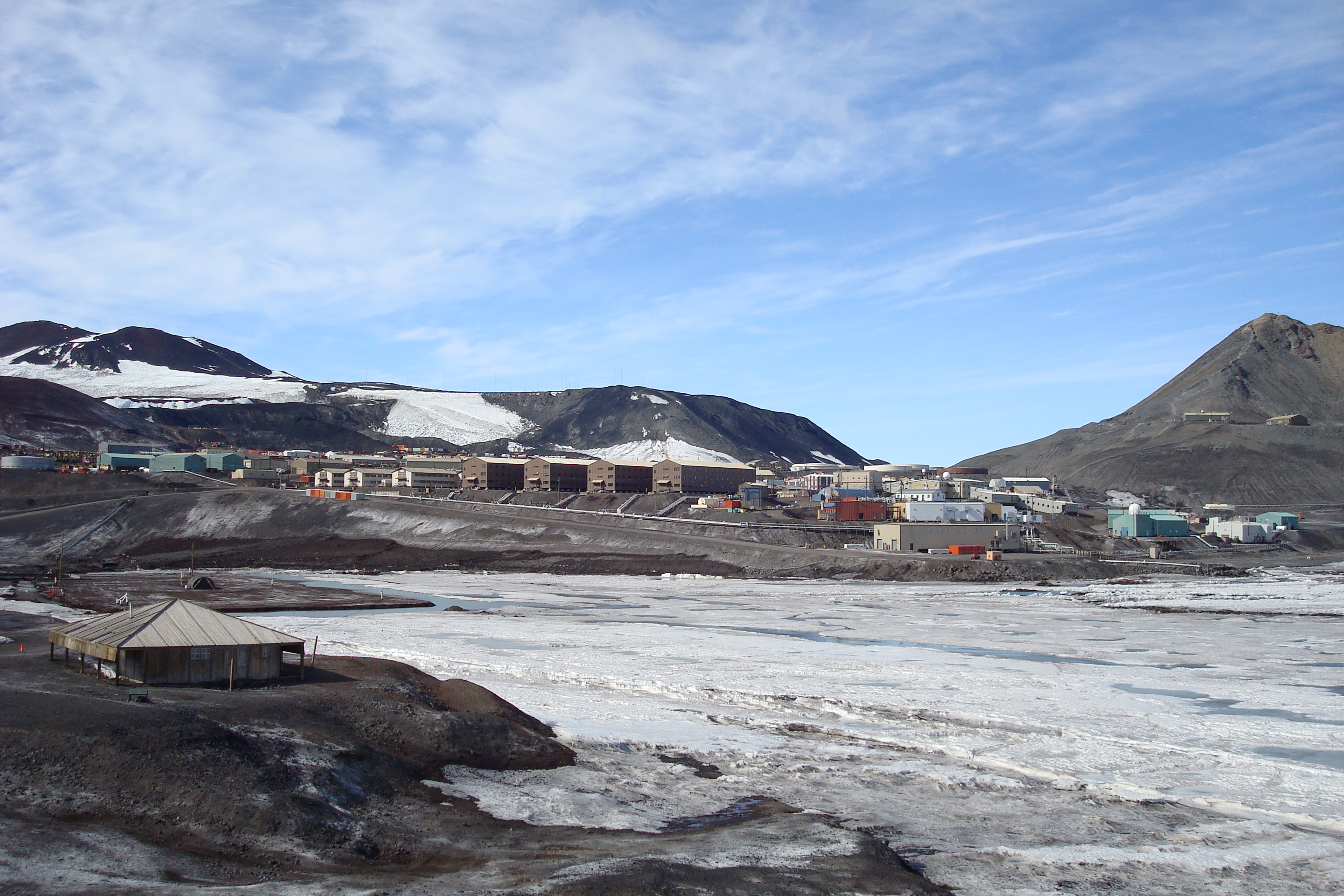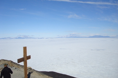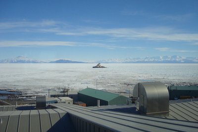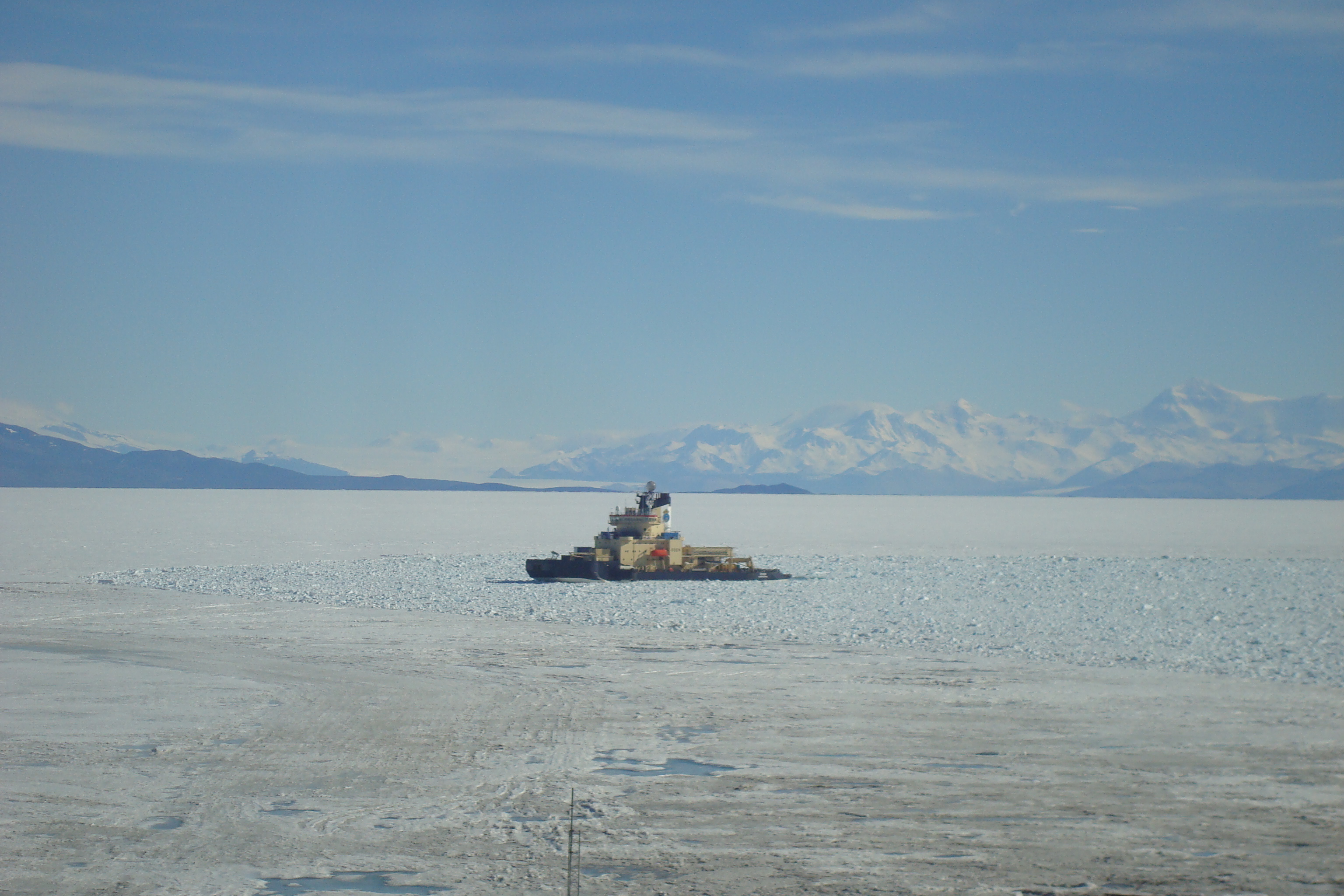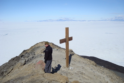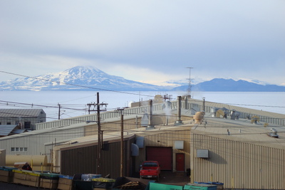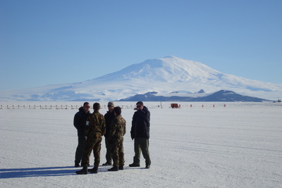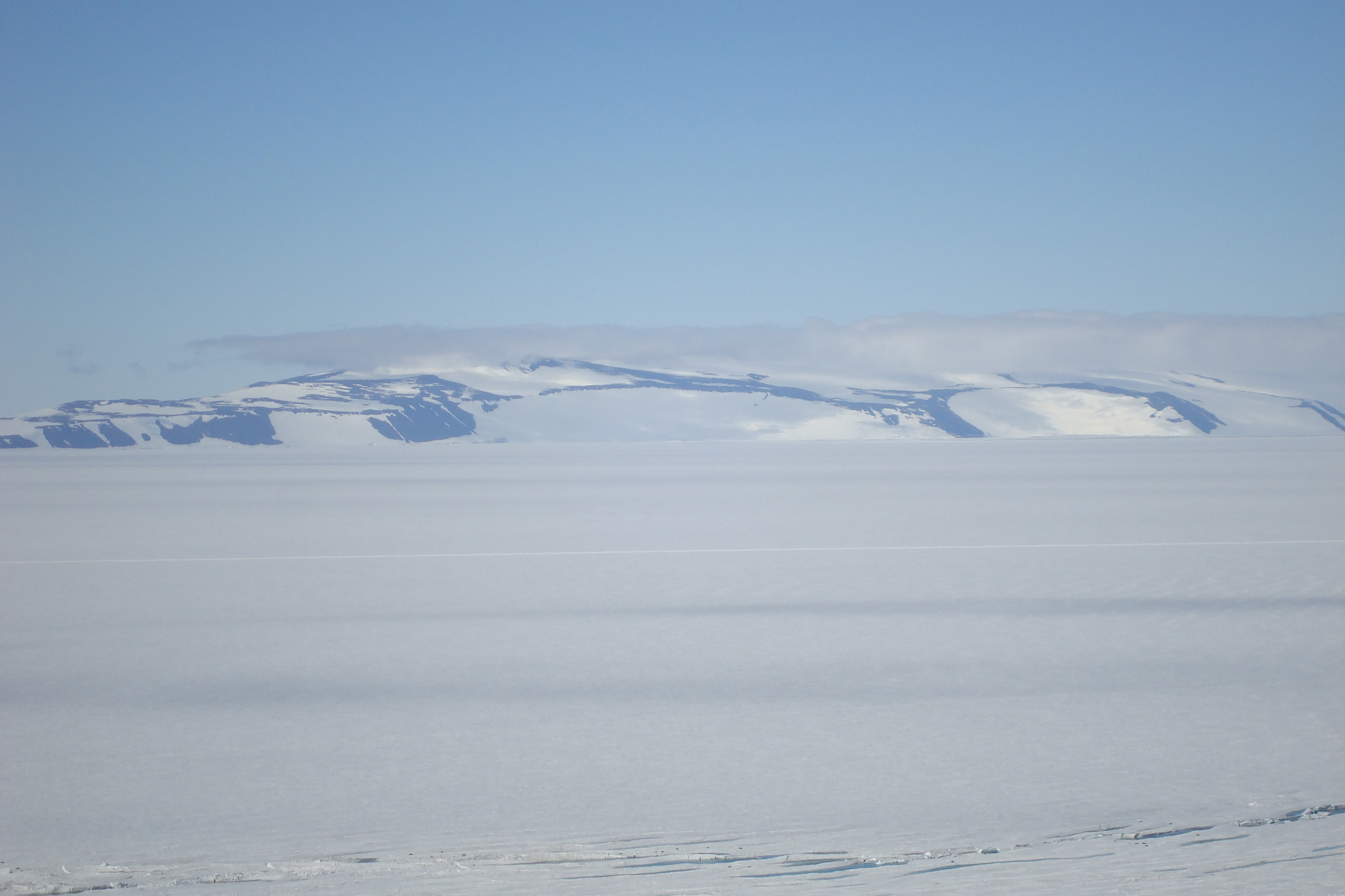 That mountain is called Mt Erebus, the southern-most active volcano. |
