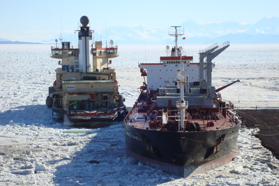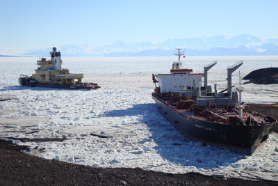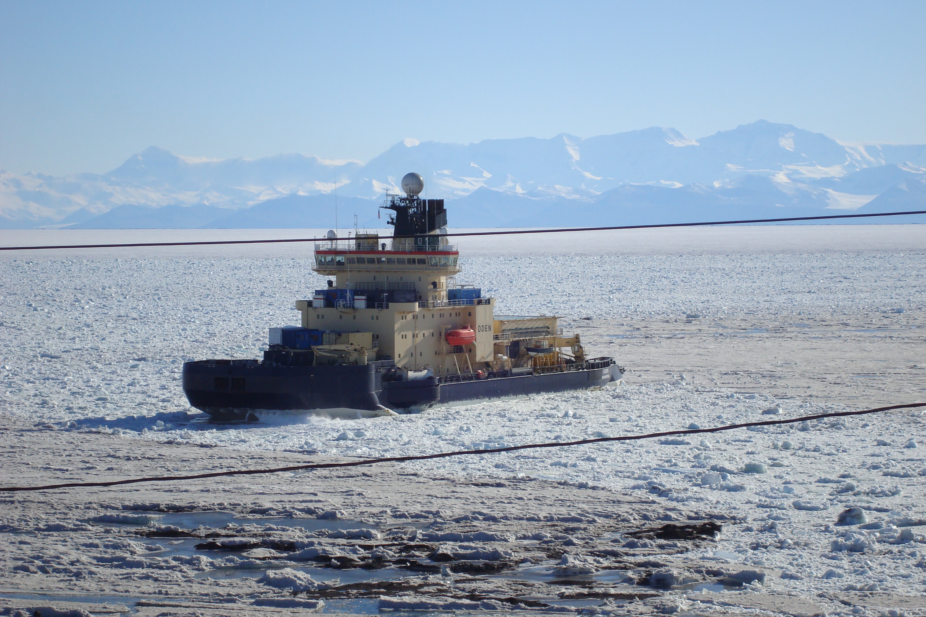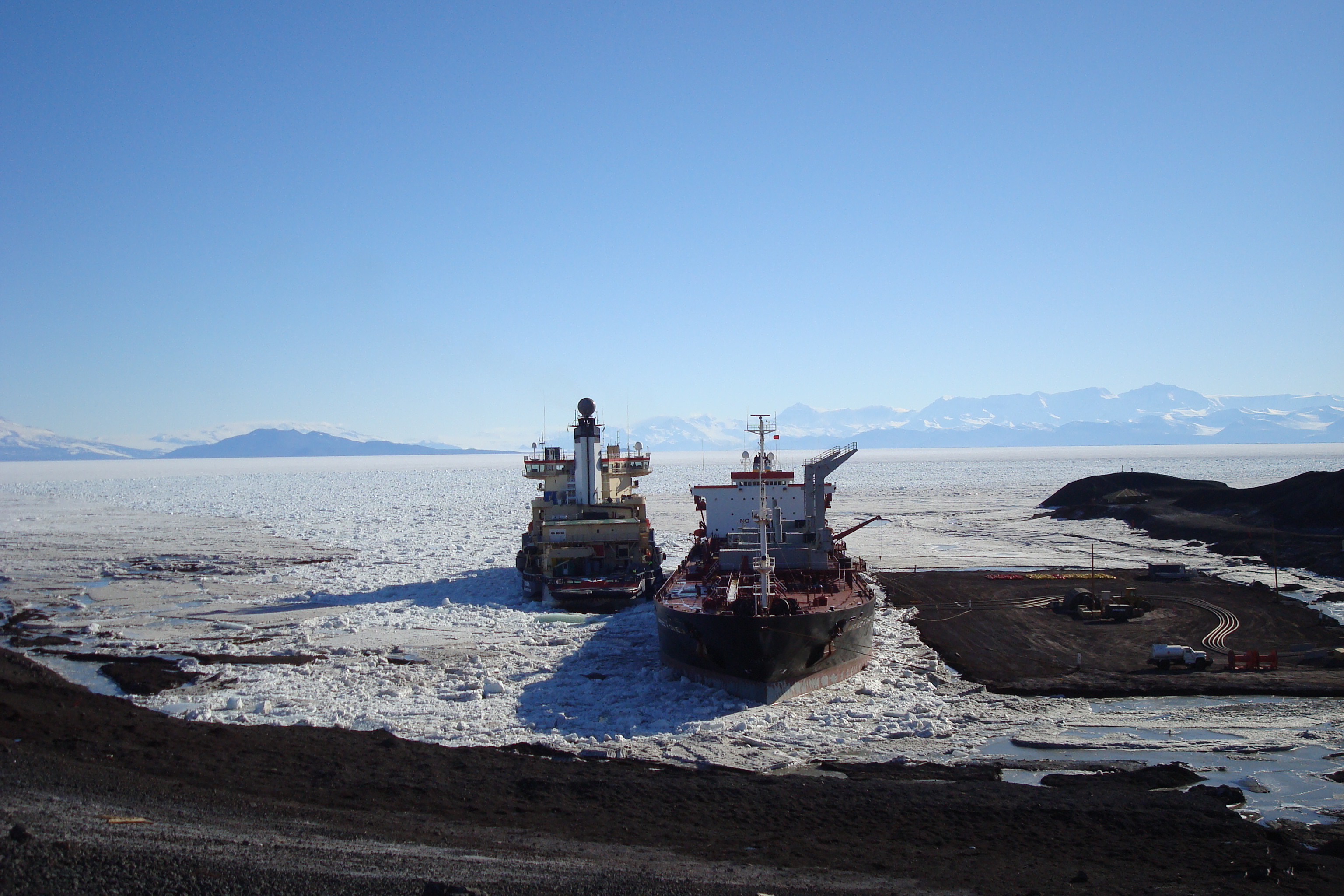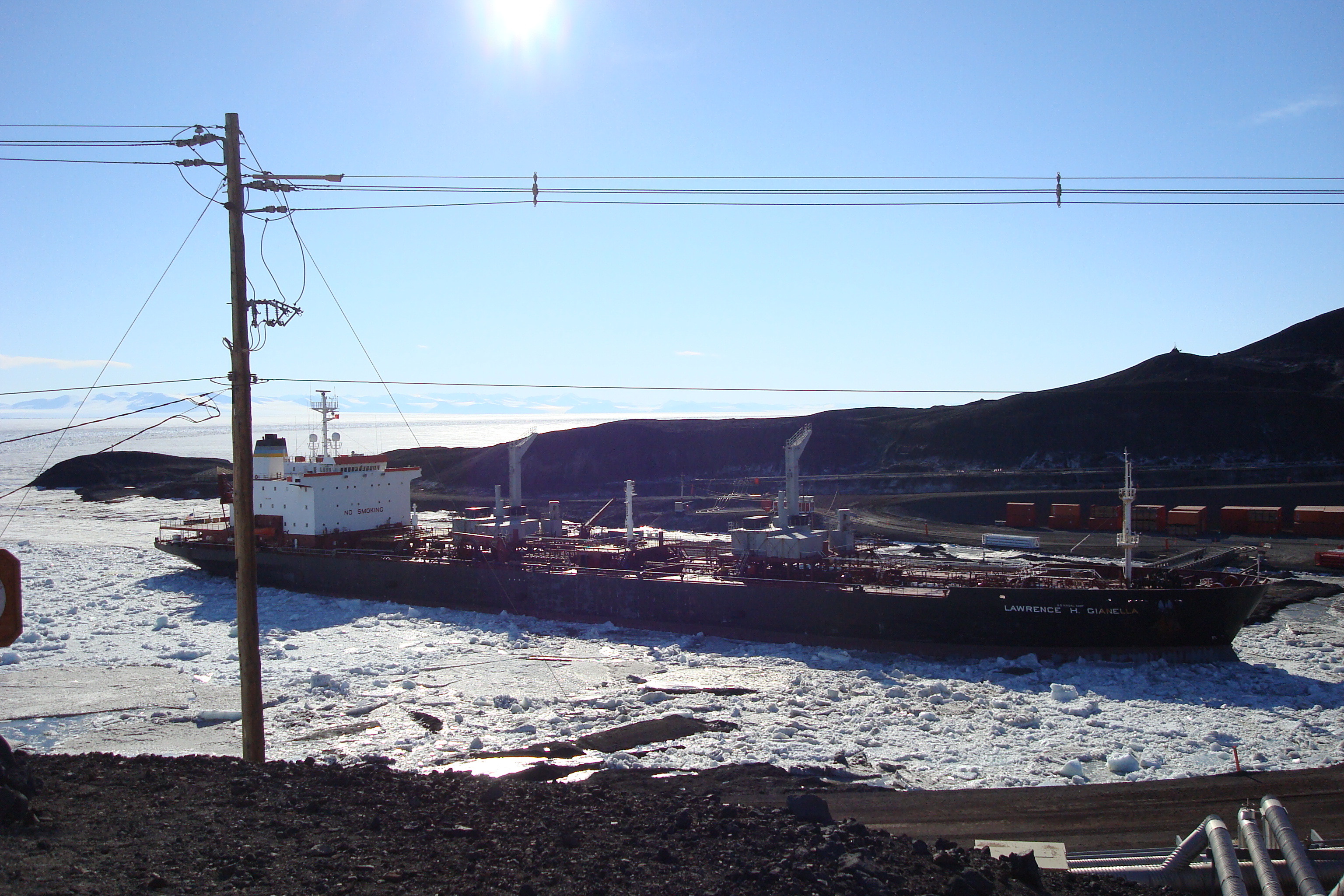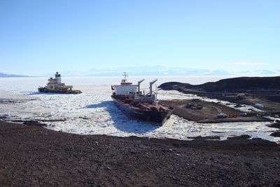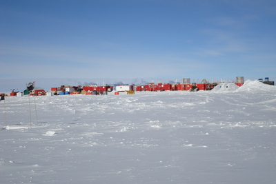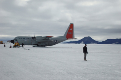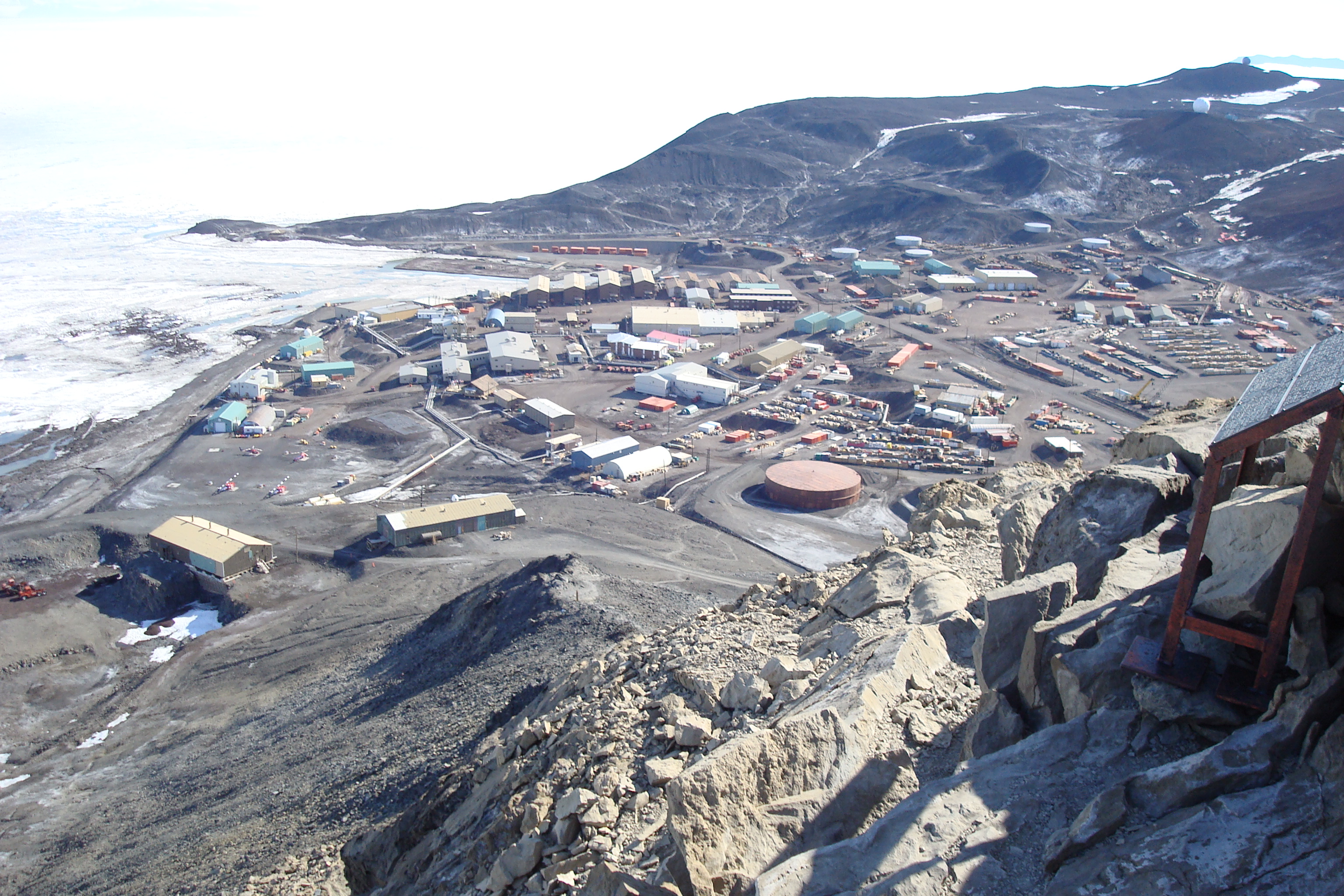 That mountain is called Mt Erebus, the southern-most active volcano. |