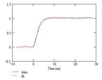 The parameter t was adjusted to make the 10-90% risetime equal to the observed value of 4 nsec.