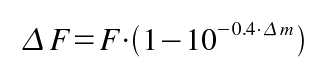 Using the known magnitudes of the reference stars above, and the relative magnitudes of the reference stars given by IRAF from the photometry, it is possible to calculate the offset for each frame. This offset is calculated by subtracting the known magnitude from the relative magnitudefor each reference star, and then calculating the average. This average offset is then subtracted from the measured magnitude of the source to get the true apparent magnitude of the source. The error on the magnitude of the source was calculated by determining the sample standard deviation of the offset and adding that in quadrature to the error on the magnitude of the source given by IRAF. In the few cases where only one reference star was available, then the error on the magnitude was calculated by propagating the errors on the known magnitudes of each reference star along with the errors on the relative magnitudes given by IRAF to get the error on the offset. This was then added in quadrature to the error on the magnitude of the source given by IRAF. Once the magnitudes had been properly calibrated, they were then converted to fluxes. This was done using the following equation from Sparke & Gallagher.