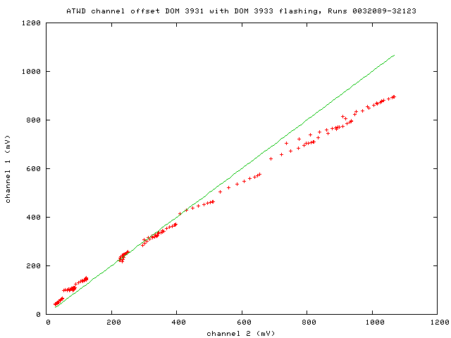 Integrating the waveforms give me charge differences in the 0.1-7%. Below are examples of waveforms each channel for DOM 3931 with DOM 3933 flashing.